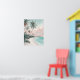 Idyllic tropical beach scene with palm trees and soft pink-teal sunset sky. Peaceful watercolor paradise art perfect for creating vacation vibes in beach house, bedroom, or tropical-inspired decor.
