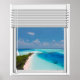Beau ciel bleu et mer tropicale, fausse scène de fenêtre, pour une salle de bain sans fenêtre ou mur de bureau. Illusion d'optique réaliste et amusante affiche pittoresque pour un bureau ou un mur d'étude.