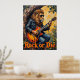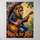 Ce tableau saisissant capture un lion majestueux, orné de lunettes de soleil et d'une veste en cuir, entièrement immergé dans le jeu d'une guitare électrique tout en s'asseyant dans l'étreinte naturelle d'un tronc d'arbre. L'écorce rugueuse environnante et les touches de feuilles verts ajoutent à l'esthétique sauvage. L'utilisation par l'artiste de touches texturées et audacieuses met l'accent sur la puissance brute et l'attitude "Rock or Die" de ce roi inattendu du rock