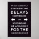 Un ensemble de messages familier dans une police familière. Retards vers le nord et vers le sud.