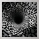 Cette image captivante présente une illusion d'optique géométrique à contraste élevé, représentant un tunnel hypnotique en spirale qui semble attirer le spectateur vers l'intérieur sans fin. Rendu en noir et blanc pointu ou en monochrome dur, les motifs complexes créent une sensation intense de profondeur et de mouvement, défiant la perception et donnant au spectateur l'impression de tomber dans un vortex visuel.