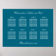 Turquoise 8 Table Mariage Seating Chart Poster, s'il vous plaît personnaliser les noms du couple et les noms des invités ainsi que l'un des autres textes que vous souhaitez personnaliser. Une affiche élégante avec un élégant texte blanc sur un arrière - plan bleu turquoise profond.