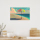 Poster Turquoise et Peach Beach, Mountain et Umrella