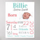 Poster Turquoise & Pêche Bébé Statistiques de naissance G