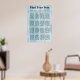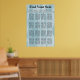 Il s'agit d'une affiche élégante avec un motif en soie bleu turquoise clair et des perles blanches. Le texte "S'il vous plaît trouvez votre siège" est un lettrage manuel aux couleurs blanc et or. Il y a de quoi accueillir plus de 100 personnes. Vous pouvez supprimer les tables dont vous n’avez pas besoin et redimensionner la police de chaque table pour ajuster leur place sur l’affiche. Ou simplement se déplacer autour du pâté de maisons des tables.