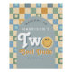 This groovy boys 2nd birthday welcome sign captures retro 70s vibes with a cute blue theme, and a pastel chequered pattern. It includes space to add your boys name in a fun script. Perfect for a "Two Cool Dude" boho birthday.