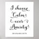 Je choisis Calm au lieu de Anxiety Inspirational Citation Poster Wall Art en typographie noir blanc. L'affiche peut servir d'affirmation pour la santé mentale, l'anxiété, la dépression, la pleine conscience, la méditation, la paix et la relaxation. Utilisez cette option de modèle personnalisée pour modifier le texte. Si vous n'avez pas besoin de texte, supprimez-le. Utilisez personnaliser pour modifier le style, la taille et la couleur du texte. Consultez d'autres affiches murales de notre collection de magasins ci-dessous.