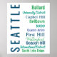 Le graphisme de style art métro présente certains des quartiers / quartiers les plus populaires de Seattle, WA dans une variété de polices. Les secteurs inclus sont Ballard, University District, Capitol Hill, Belltown, SODO, Queen Anne, First Hill, Wallingford, Beacon Hill, International District, South Lake Union