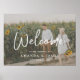 Cette affiche de bienvenue pour un mariage simplement chic présente votre photo préférée et du texte blanc, y compris 'Welcome' dans un script moderne décontracté. Cette partie du design ne peut pas être modifiée. Mais vous pouvez changer l'apparence de n'importe quel autre texte, donc lorsque vous modifierez vos propres noms et date, vous pourriez également vouloir changer la police ou remplacer 'TO THE WEDDING OF' par 'TO OUR WEDDING' ou autre chose, etc. Nous avons placé une couche grise semi-transparente sur la couche de photo pour adoucir la couleur de votre photo et faire ressortir davantage le texte.