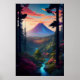 Découvrez la vue à couper le souffle depuis le bord de la forêt, en regardant vers un volcan immense au loin. La canopée verte de la forêt contraste avec la majestueuse présence du volcan, créant une scène d'émerveillement. Immergez-vous dans la beauté de cet art numérique pittoresque, où l'harmonie de la nature et la grandeur du volcan convergent dans un panorama fascinant.