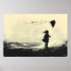 Poster Un cerf-volant de fille sur la rive à Dusk - Charb