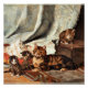 Un chat avec trois chatons. Peinture d'art de Julius Adam, 1887