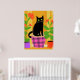 Poster Un Chat Noir Avec Plantes Ménagères Plat Rose Viol