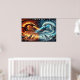 Une scène épique d'imaginaire dépeint un choc dramatique d'éléments : le feu et la glace. Deux dragons mythiques, l'un creusé de flammes, l'autre chatoyant de glace, se font face. Le dragon de feu, écailles brillant comme de la lave fondue, s'envole à travers un ciel enflammé. Le dragon de glace, chatoyant dans les tons bleu et blanc, émerge d'un terrain vague gelé. L'arrière - plan est un contraste saisissant entre le feu et la glace. "FIRE & ICE" est affiché en haut
