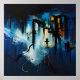 Un vent glacé blanc tournoie au fond de la nuit dans cette image expressionniste abstraite où quelques lueurs légères dans la même nuit. Cet art a été imaginé avec de l'IA.