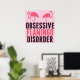 Poster sur les troubles du Flamant rose Obsessif. De jolis flamants roses se marient sur des mots drôles pour les amateurs de flamands roses.