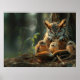 Joli design d'une chouette avec des lunettes lisant un livre dans la forêt à des petits poussins