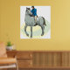 Un homme en tenue d'équitation à cheval. Ce design semble vraiment efficace sur ces Poster