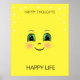 Happy pensées et le visage heureux apporte la vie heureuse sur l'affiche jaune. Quelque chose à avoir toujours en tête !