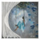 Poster Une femme en robe bleue sur un swing
