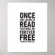 Une fois que vous apprendrez à lire, vous serez toujours libre, citant Frederick Douglass. Citation inspirante, Don d'amant du livre, Cadeau de l'enseignant, Décor de bureau, Peinture murale en salle de classe.