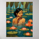 Poster Une Indienne dans un étang entouré de fleurs de lo