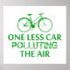 Une silhouette d'une bicyclette verte et en dessous l'expression "Une voiture de moins polluant l'air"