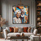 This geometric-style piece portrays an elderly couple with love and serenity, using colorful triangles in warm and cool tones. The interwoven shapes symbolize a shared life, while vibrant colors highlight the strength and harmony of their connection over time.