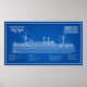 Poster USS Maine - Plan de plan des navires ABD