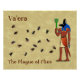 Illustration un peu humoristique pour la partie Va'era de la Torah dans laquelle se produisent les deux premiers fléaux - G-d envoie des essaims de mouches sur Pharaon et son peuple après que Pharaon refuse de laisser partir les Israélites. Anubis, le dieu égyptien des rites funéraires, ici, comme d'habitude, représenté comme un canin ou un homme à la tête de canine, tenant une mouche verte baveuse avec de nombreuses mouches mortes brisées sur un mur.