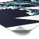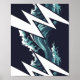 Un design graphique audacieux avec de puissantes vagues océaniques dans des tons turquoises, turquoise et bleu profond, contrastés par des éclairs blancs tranchants qui traversent un arrière - plan de marine sombre. La composition dynamique combine le mouvement fluide des vagues qui s'écrasent avec l'intensité déchiquetée de la foudre, créant un visuel spectaculaire et énergique qui capture la force brute de la nature.