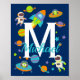 Une superbe affiche personnalisée de l'espace pour la chambre d'un enfant. Caractéristiques un vaisseau spatial, des astronautes, des planètes - et bien sûr un extraterrestre ! Parfait pour la décoration de chambre de garçon ou comme impression pour la nurserie.