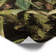 L'image présente un paysage tropical vibrant avec une végétation luxuriante, de grands palmiers et une rivière sereine serpentant dans une vallée. Dans l'arrière - plan, les montagnes s'élèvent dans un ciel rempli de grands nuages dorés. Le premier plan est riche de la vie plante variée et de fleurs colorées. L'ensemble est calme et onirique, avec une attention portée à la beauté naturelle.