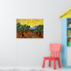 Affiche de paysage de Vincent van Gogh, Oliviers avec ciel jaune et soleil.