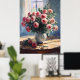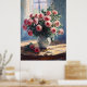 Poster Vase de roses roses par fenêtre - Art impressionni