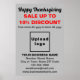 BON THANKSGIVING ! Un jour férié pour célébrer et remercier pour les bénédictions que nous avons reçues. C'est aussi l'un des jours fériés pour annoncer votre entreprise. Affiche personnalisable avec Thanksgiving Sale, votre nom d'entreprise et d'autres informations. Poster que vous pouvez utiliser comme matériel marketing pour attirer plus de clients. Customisez-le et utilisez-le pour convaincre plus de clients d'acheter vos produits ou clients à aimer vos services ce Thanksgiving. Les couleurs design sont des textes noirs et rouges sur arrière - plan gris. Les contenus sont des salutations Bons thanksgivings, des textes de vente avec pourcentage de réduction que vous offrirez, des dates de vente, votre nom d'entreprise, logo, adresse, numéro de téléphone, e-mail et site Web ou votre page de médias sociaux d'affaires. Veuillez vérifier l'apparence après avoir téléchargé le logo et tapé des textes. Si l'apparence vous plaît, vous pouvez passer votre commande maintenant. Si vous avez besoin de redimensionner et déplacer le logo et les textes pour s'adapter sur cette affiche ou sur la taille et la forme que vous choisirez, s'il vous plaît changer dans l'outil de conception. Vous pouvez également effectuer d'autres modifications dans l'outil de conception en fonction de l'apparence de cette affiche que vous préférez, comme changer la couleur arrière - plan, la couleur de police et le style de police. BON THANKSGIVING ! Je vous souhaite plus de ventes ce jour férié.