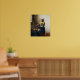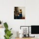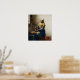 Johannes Vermeer L'affiche Milkmaid. Peinture à l'huile sur toile vers 1660. Le Milkmaid de Vermeer, une belle représentation d’une cuisine hollandaise, capture avec grâce et maîtrise la vie de la classe moyenne du nord de l’Europe. La laitière transporte le lait d'un pot dans une plus grande casserole entourée de pains frais variés, d'un draps bleu et d'un panier. La femme porte elle-même un foulard blanc, un corsage jaune et une jupe bleue et rouge aux manches vertes. Un grand cadeau pour les amateurs de Johannes Vermeer, de peinture baroque et d'art néerlandais.
