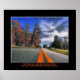 Une image artistique colorée et vibrante de la route serrée d'arbres tombants au fond du sol et d'une bordure noire, avec la citation "Vous savez que vous êtes sur la route du succès, quand vous réalisez que l'échec n'est qu'un détour."