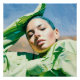 Un portrait en gros plan saisissant et éclairé par le soleil d'une femme vêtue d'une tenue verte vibrante, sur fond de paysage désertique chaleureux. La pose de la femme est à la fois expressive et confiante, la main reposant gracieusement sur la tête, créant un sentiment d'élégance et de mouvement. Le ciel bleu clair contraste magnifiquement avec sa tenue, ce qui fait ressortir les teintes vertes avec audace. Cette image reflète un mélange moderne de mode et de nature, mettant en évidence le lien harmonieux entre les couleurs vives et l'environnement naturel. Parfait pour ceux qui recherchent une expression créative et élégante dans la photographie de plein air.