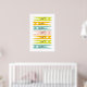 Une façon amusante d'égayer la tâche banale de faire la lessive, cette grande affiche peut être accrochée verticalement ou horizontalement et comprend une collection de broches à vêtements simplement illustrées dans une palette de couleurs vives joyeusement rétro.