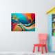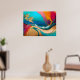 This vibrant abstract artwork captures the spirit of a tropical beach through flowing forms, bold color, and a sense of endless summer energy. Turquoise and deep ocean blues stretch across the horizon, while warm sands curve gently through the composition in layered tones of gold and cream. Explosive accents of coral pink, sunset orange, and rich magenta rise like a glowing sky, creating a dynamic contrast that feels both joyful and immersive.