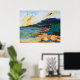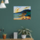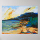 A striking coastal scene with intense colors features a vivid sky and textured landscape. The composition blends bright and dark tones artfully.