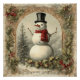 Cette affiche nostalgique de Noël présente un bonhomme de neige classique avec un chapeau haut et un foulard rouge, encadré de saints, de baies et de branches à feuillage persistant. Les tons vintages tamisés lui confèrent un charme suranné, parfait pour créer une ambiance chaleureuse et festive pendant la période des fêtes. Idéal pour décorer des espaces douillets, faire des cadeaux ou ajouter une touche de nostalgie aux célébrations de Noël.