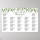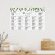 Poster mariage vert pour une grande réception de mariage. Des vignes vertes sont accrochées au sommet du papier de 24 x 36 pouces. Les noms et la date du mariage sont en haut. Customisez chaque bloc de texte avec le nom des invités et du siège par numéro de table ou alphabétiquement.
