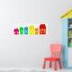Belle illustration d'un groupe de maisons de différentes couleurs et tailles debout dans une rangée. Image disponible sur divers cadeaux et produits.