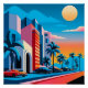 Un rendu numérique d'une ville de plage dans le style futuriste vectoriel.