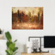 Cette affiche magique est adaptée d'une peinture à l'huile originale d'Anna Unterman. Une ville au bord de l'eau brille de lumière dorée éclairée. L'ensemble du paysage urbain est une étude impressionniste en brun, orange, or et noir. Reproduite avec l'autorisation de la succession d'Anna Unterman. Tous droits réservés.