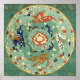 Design vintage chinois vert de la nature montrant la terre, la mer et l'air avec des chevaux en course Ce design chinois vintage montre des chevaux tournant autour du vert bleu design complexe. Il montre l'air, la terre et la mer. Le magnifique paysage chinois est un motif de platine en émail cloisonné avec des chevaux, des vagues ornementées, des chauves-souris et des oiseaux flottant dans les nuages. Ce magnifique paysage chinois est un cadeau unique, parfait pour ceux qui aiment l'art chinois vintage.