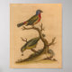 Illustration d'oiseau vintage de 1776 tirée de Gleanings of Natural History. Oiseau vert, rouge et bleu à plumes assis sur une branche d'arbre.