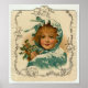 Très belle image vintage de Noël d'un bel enfant vêtu d'un manteau vert et portant des sprigs de saint.
